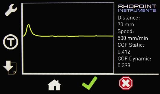 測試后立即在屏幕上顯示靜態(tài)和動(dòng)態(tài)摩擦系數(shù)結(jié)果