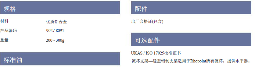由優(yōu)質(zhì)鋁合金杯身和不銹鋼流嘴制成,Rhopoint PAINTLAB +流杯適用于UKAS /ISO 17025認(rèn)證標(biāo)準(zhǔn)油且符合測(cè)量規(guī)格。